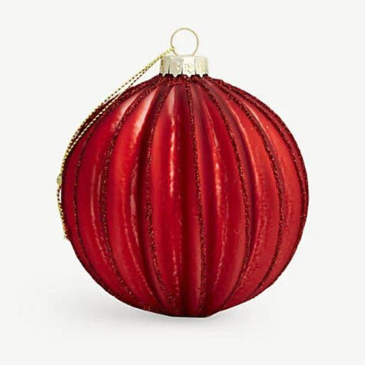 Another beautiful glass bauble from award winning manufacturer Gisela Graham. A matt red with a ribbed finish. Strips of red glitter highlight the ...